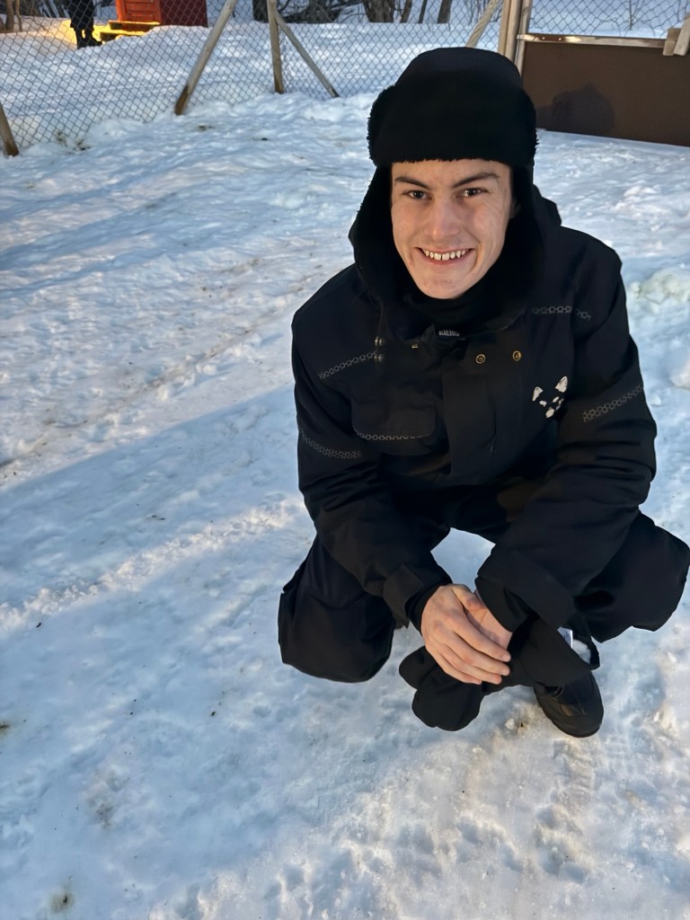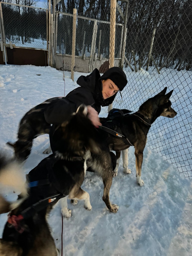 Then with outfit change one we suited up in our winter gear and took off to explore dog sledding. We went with Kvaløya Husky. But first we had outfit change two. Apparently the dogs can mess up your gear so they provided some for us.