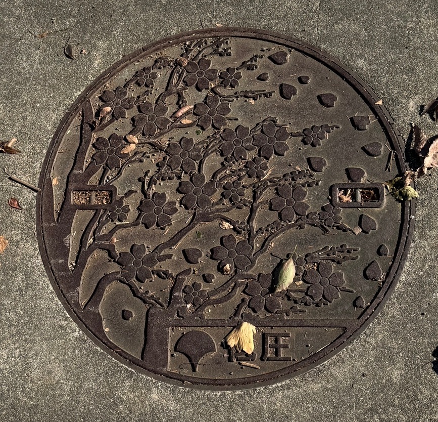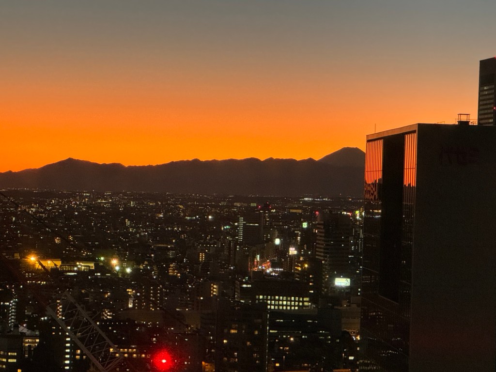 Two final shots in closing for the day. A cool manhole cover and a view of the sunsetting against Mt. Fuji from our hotel room. Good night Tokyo!