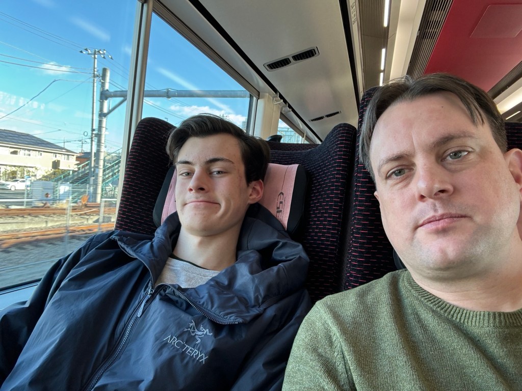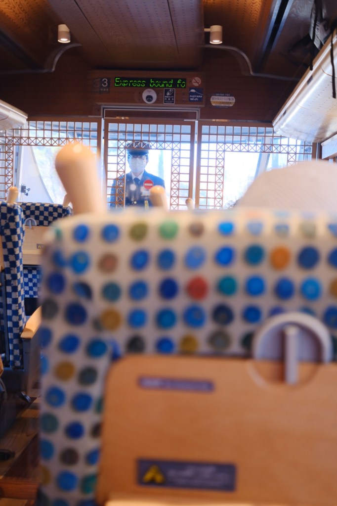 On the way back, our adventures continued. This time our departure lined up with one of the reserved trains operated by Fujikyu (not the JR East Fuji Excursion). A rail attendant saw us looking indecisive and sold us a ticket. Fun to luck into things.