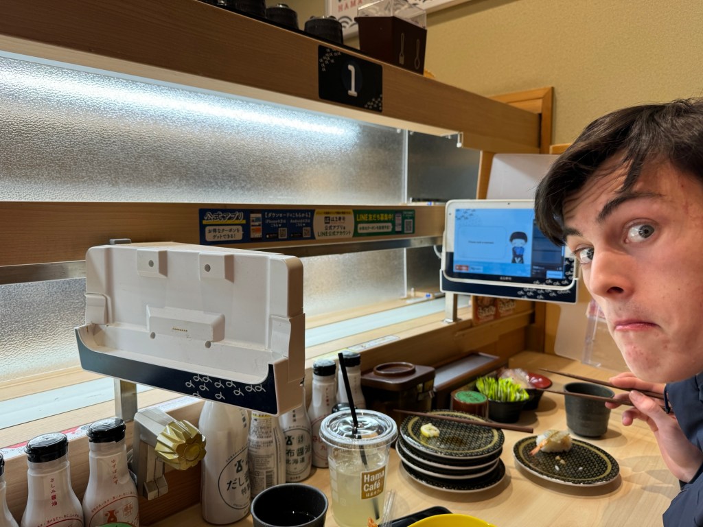 Then we got sushi at a restaurant that delivers the sushi to you on conveyor belts.
