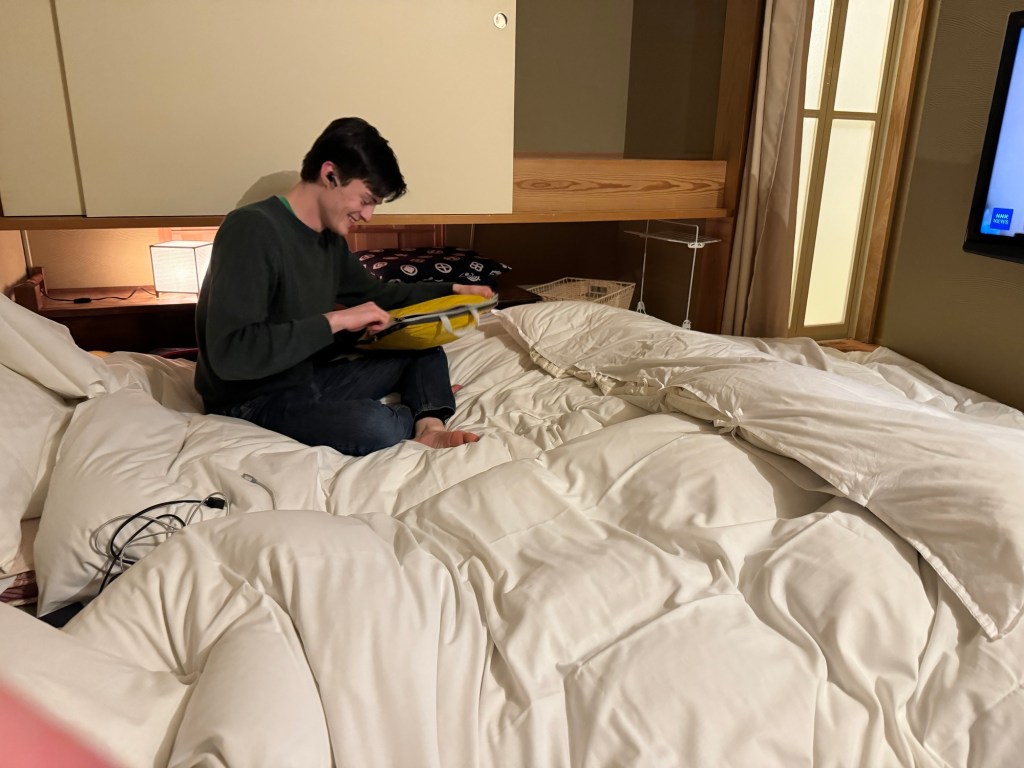 The inn is lovely. We stayed in a Japanese style room where we slept on the floor.