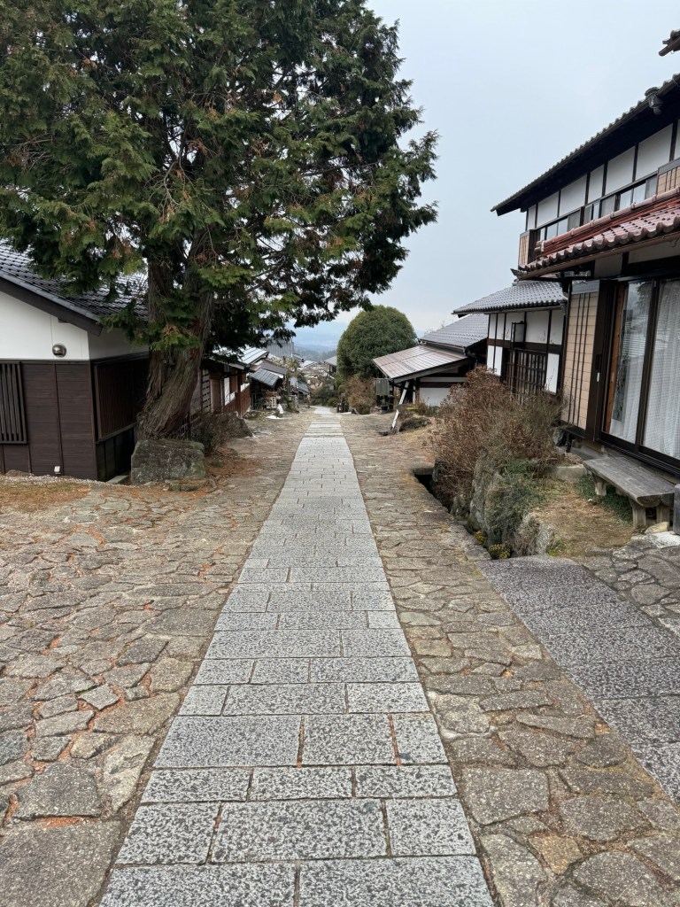 After a lunch of Soba noodles we decided to walk on for Nakatsugwa where we needed to catch the train. This took us across a portion of the trail that had stones from the original trail.