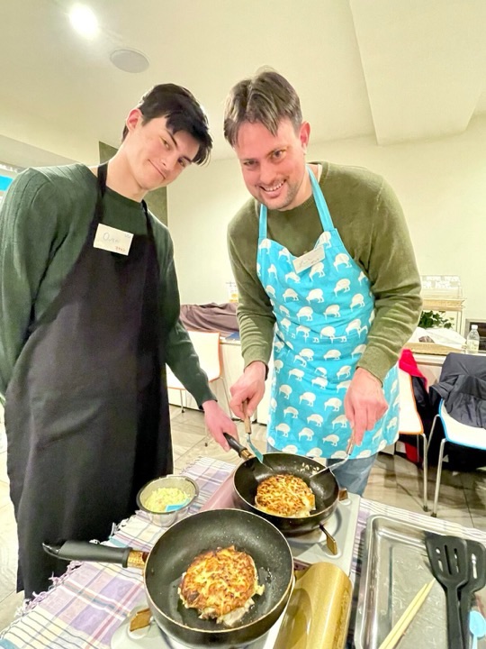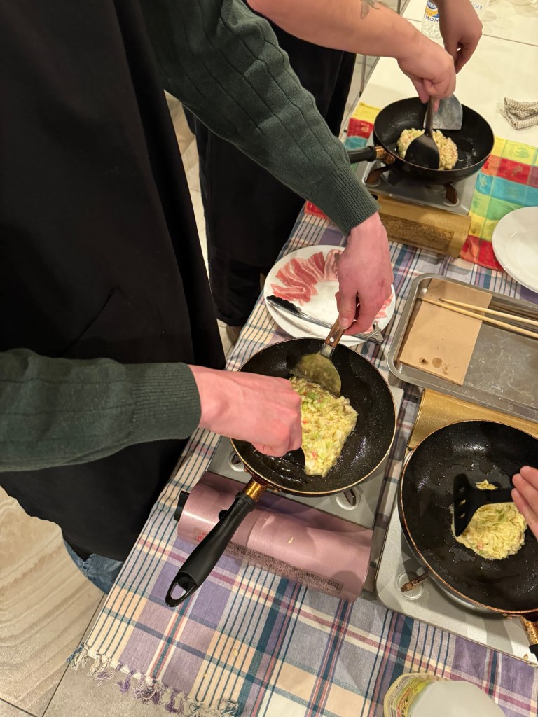We eventually made it to our Okonomiyaki cooking class with Keiko. We got to prepare the batter and then add our own toppings and fry it up. It was great fun. Keiko through her organization C Flat hosted the class and they do many other things.