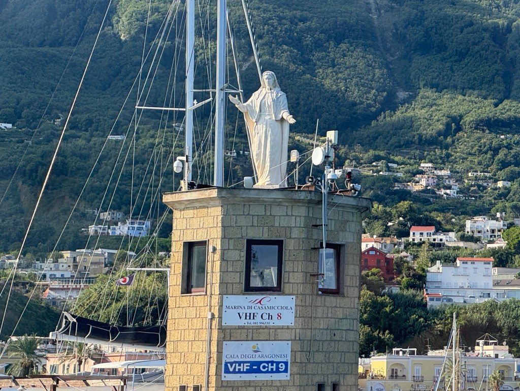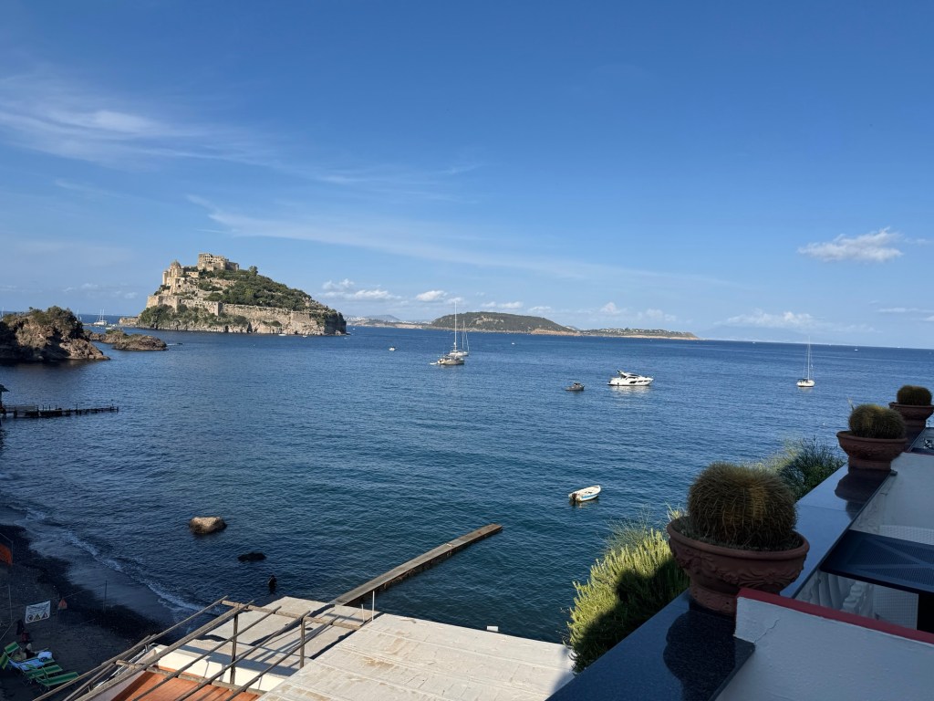We got up and made our way past the Castle Nuovo and to the ferry dock. We found the next ferry to Ischia. If you as one of the high speed variety (snav). We were able to board and get window seat on the ride over to watch Naples harbor and the islands pass by.