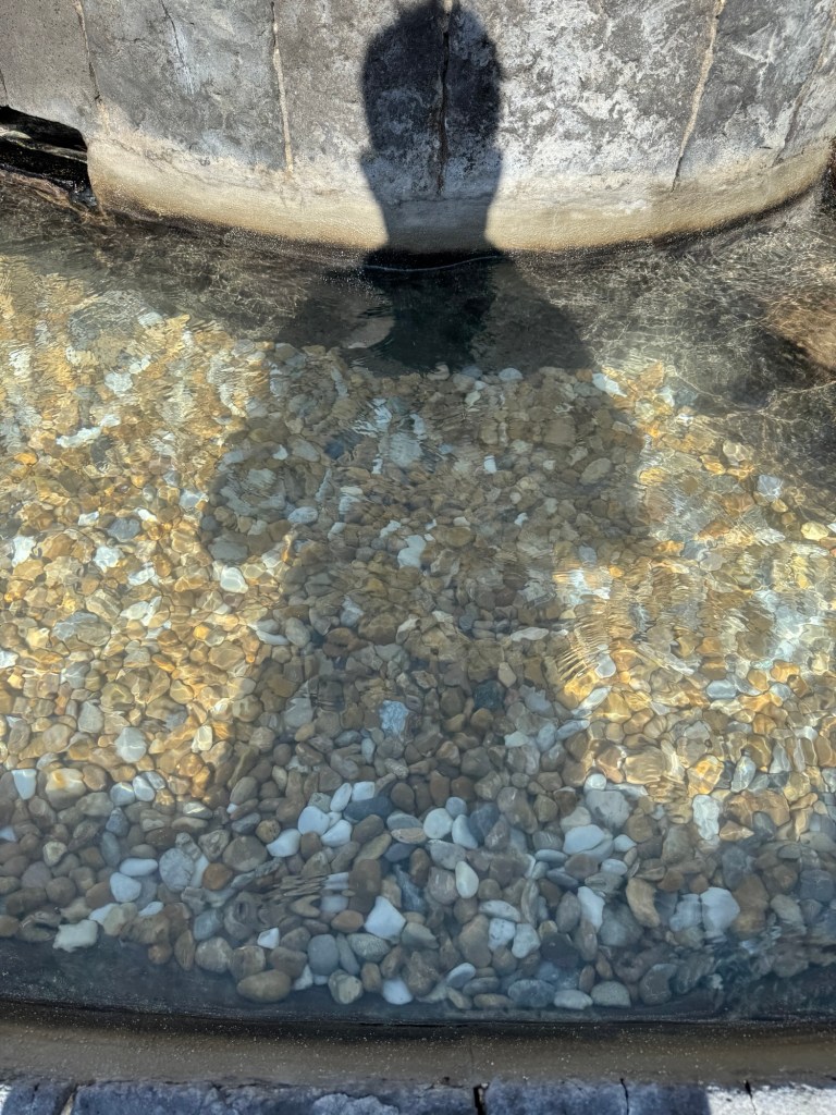 We started with the Japanese one where you walk around an oval on pebbles. Half the oval shot water and the other half is cold.