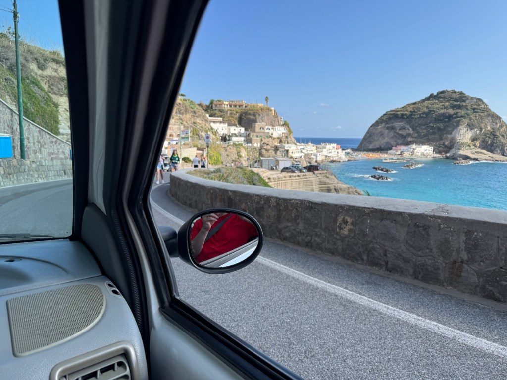 There are several ports in Ischia and we went into Casamicciola. We got off the ferry and rented a car from ischisrentacar – we just walked up and for 35€ we had a car and were off. No extra fees but a mostly empty tank. The simplicity was refreshing.