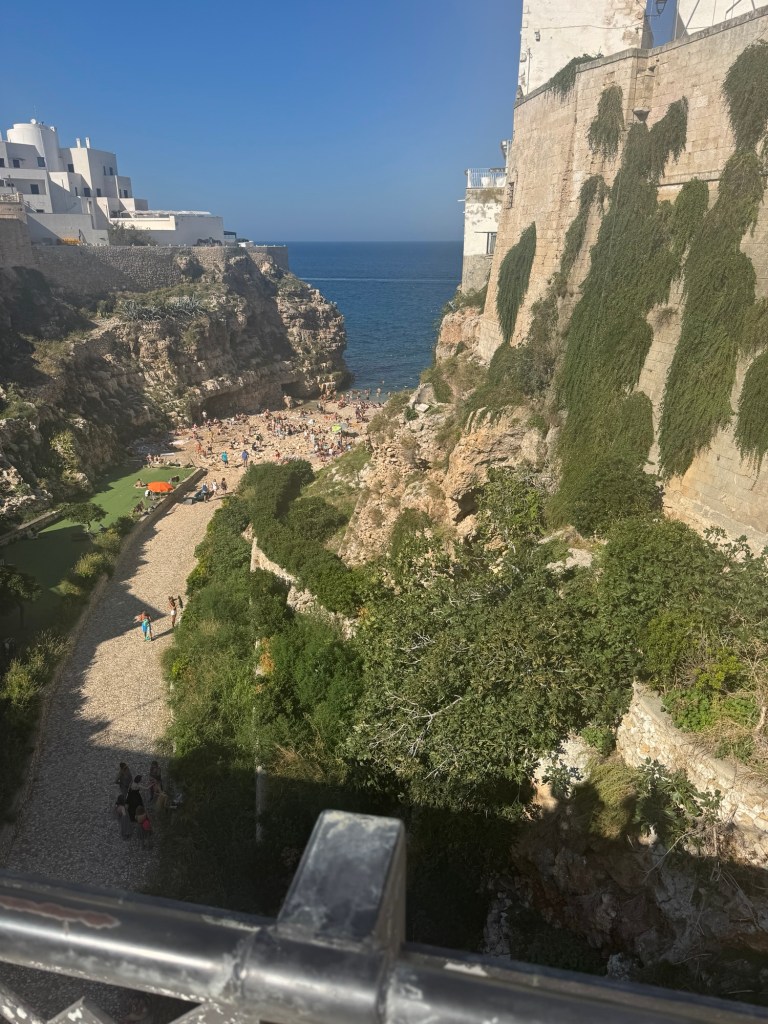 We drove on to Polignano a Mare – our first city in the east coast of Italy. After a quick and yummy sandwich from Olio su Pane we headed for Lama Mochile. This rock beach sites in a ravine and is quite striking and busy.