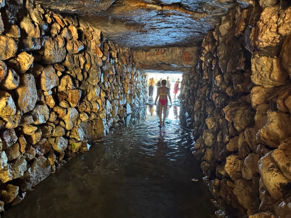 While there we explored the tunnel that had been carved out of the rocks. It led to a ledge where people got to rocks for some cliff diving and such. Pretty fun place with lots of folks.