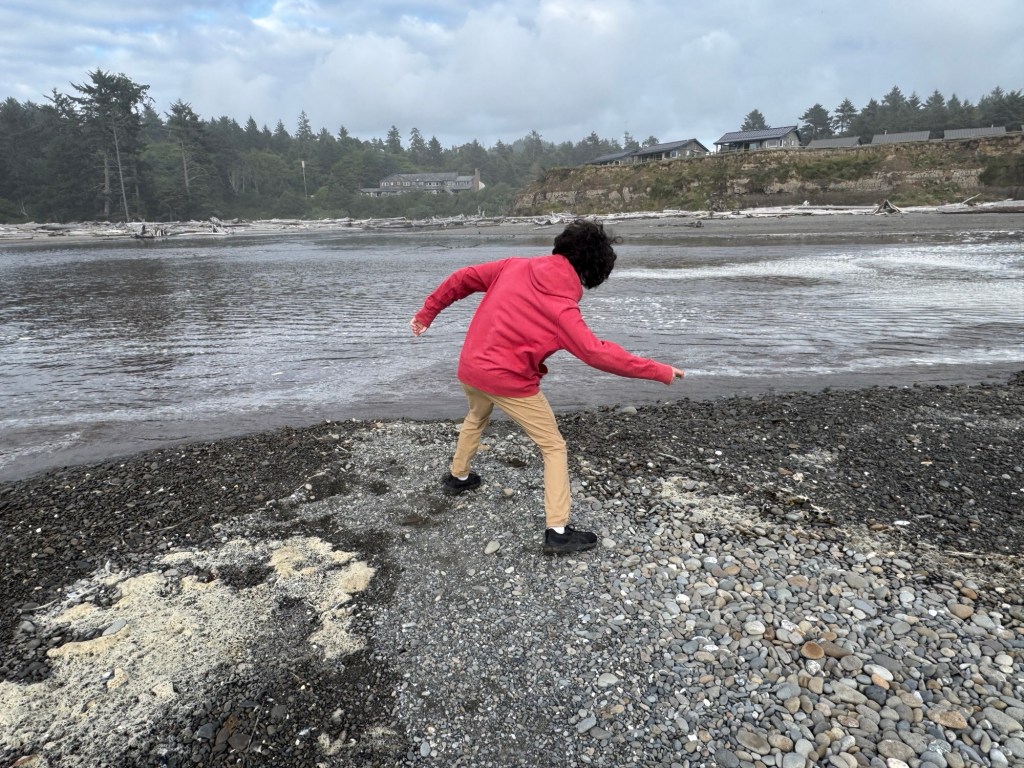 From here we drove down to Kalaloch Lodge where we stayed for the evening. After getting settled we went down to the beach and ended up skipping rocks. During the trip in 2016, we covered much of this ground. Imogen was with us on that trip. It has been lovely and hard to see the same things we did and know that she is not with us any longer. As we skipped rocks, I remembered doing that in many of these same spots – life moves forward and there are many amazing things but also sadness that Imogen is no longer with us and did not get the chance to come back.